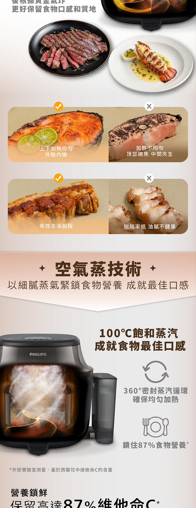 100℃純蒸技術,鎖住營養與鮮嫩
