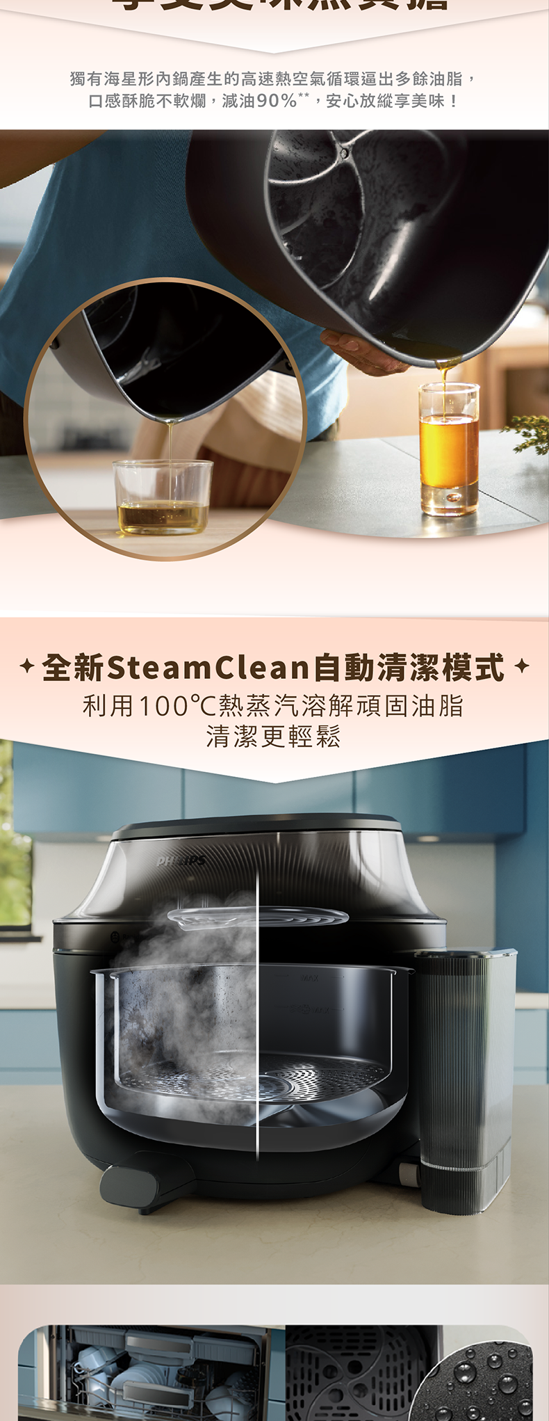 蒸汽及氣炸功能二合一設計,開啟烹飪新體驗