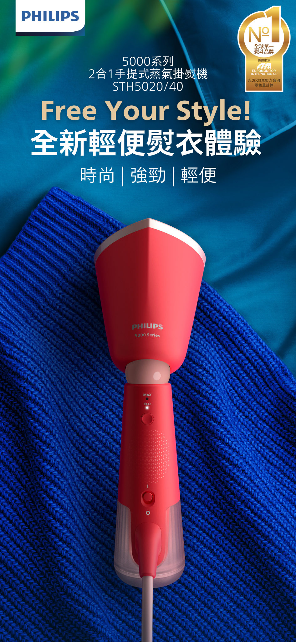 • 垂直掛熨及水平熨燙2合1,毋須使用熨衣板