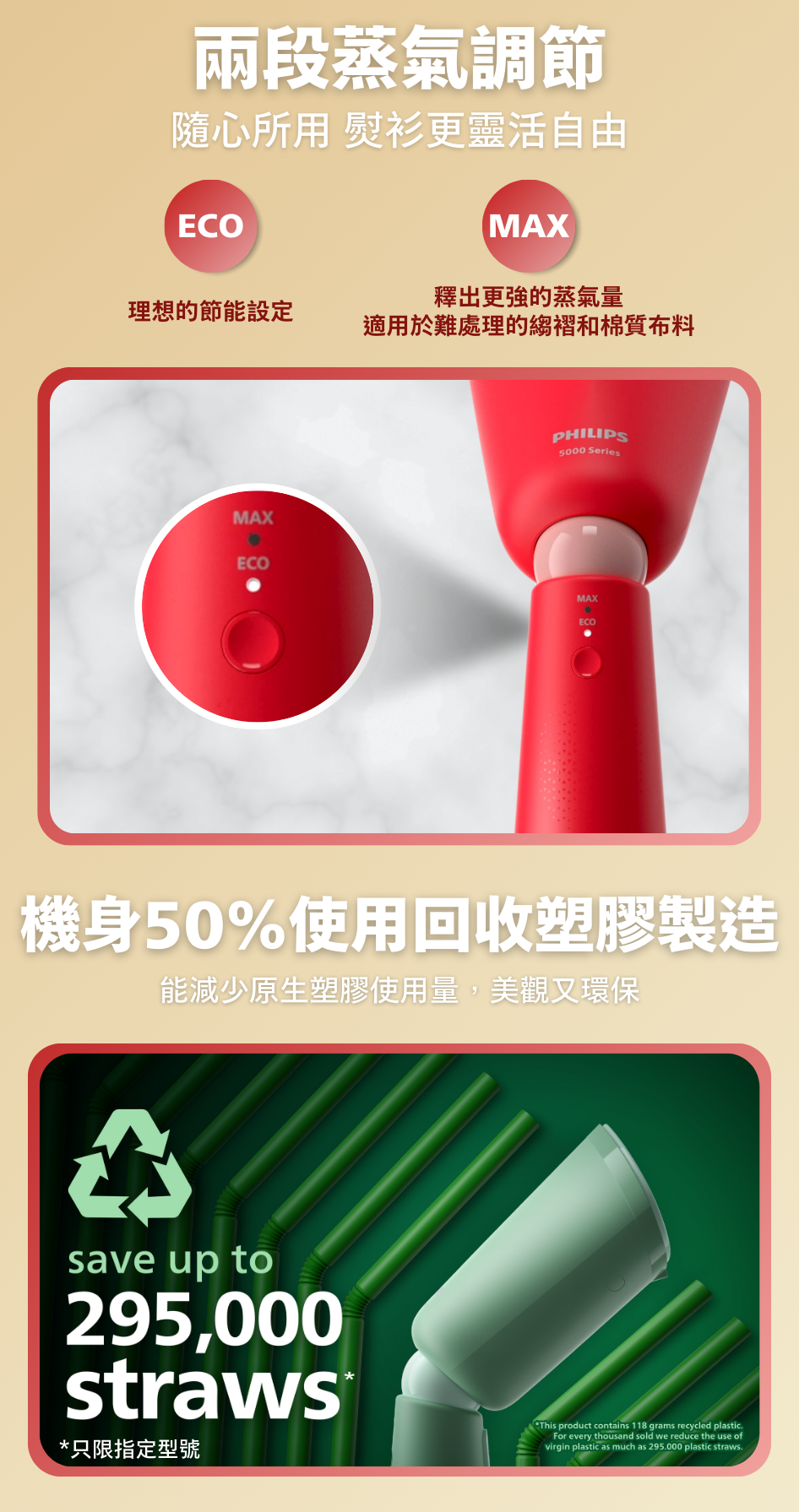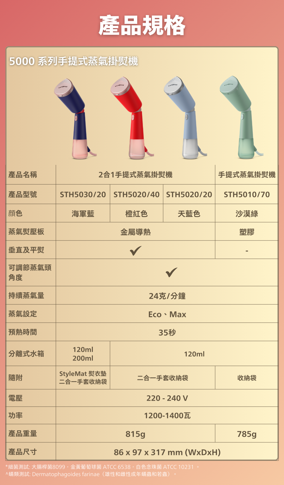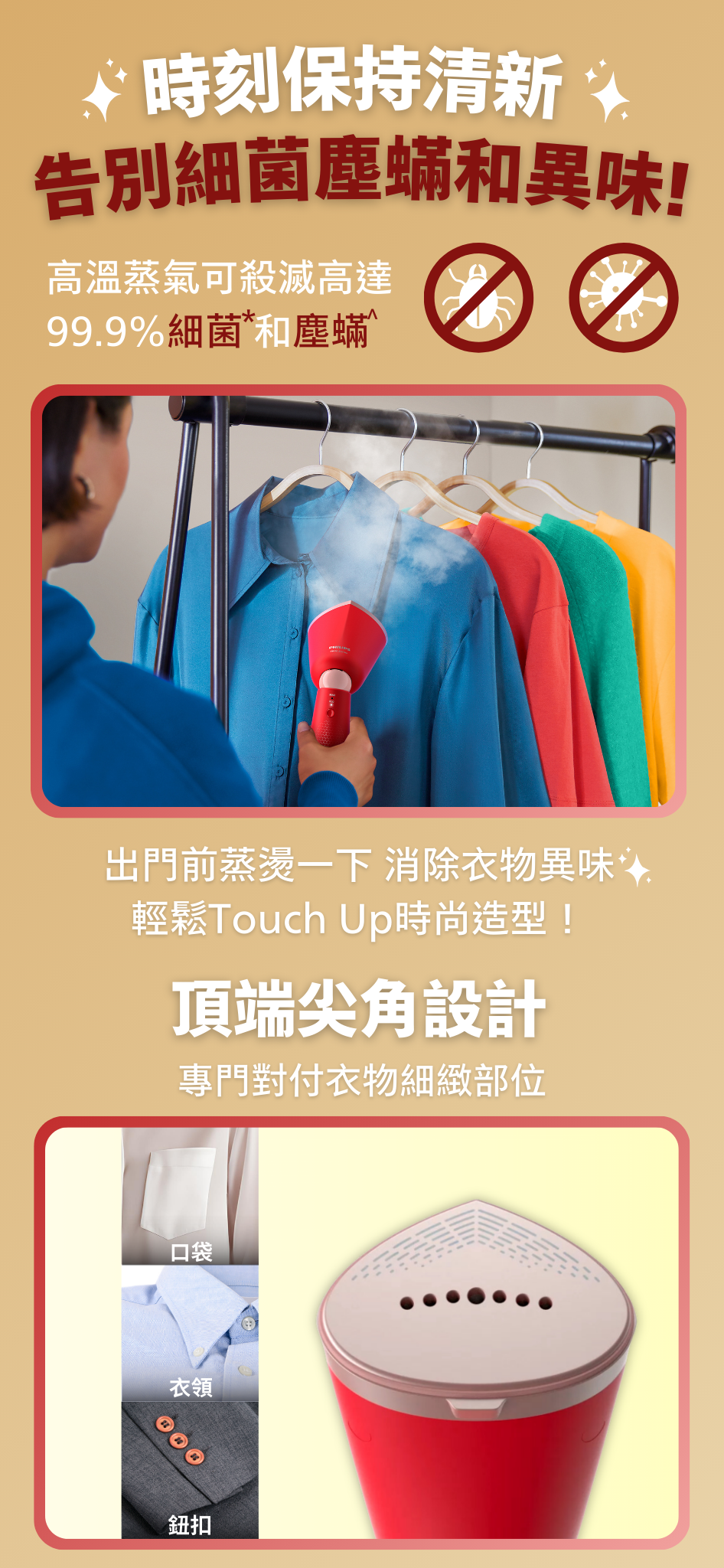 • 纖巧機身,可調校角度蒸氣噴頭,方便收藏和旅遊使用