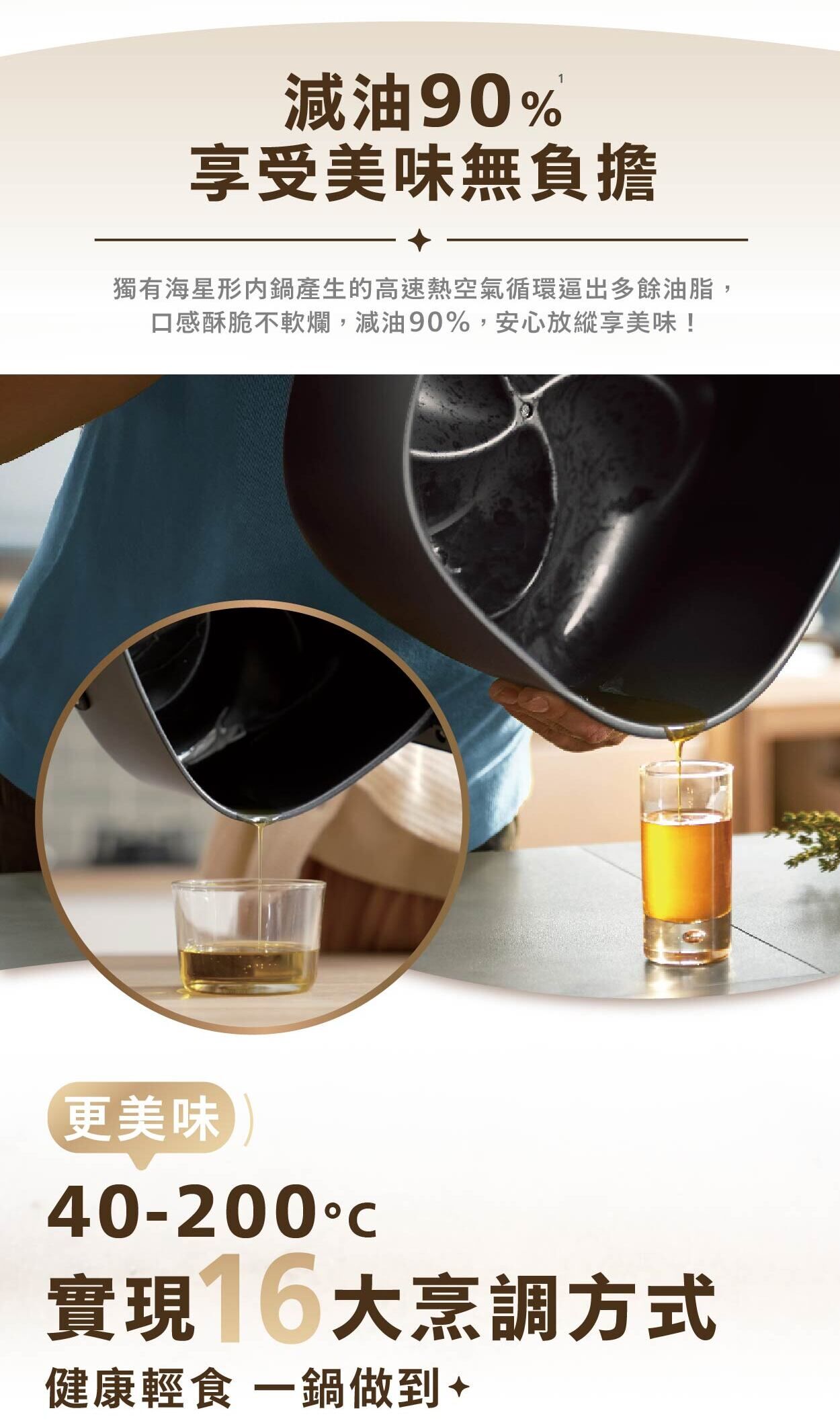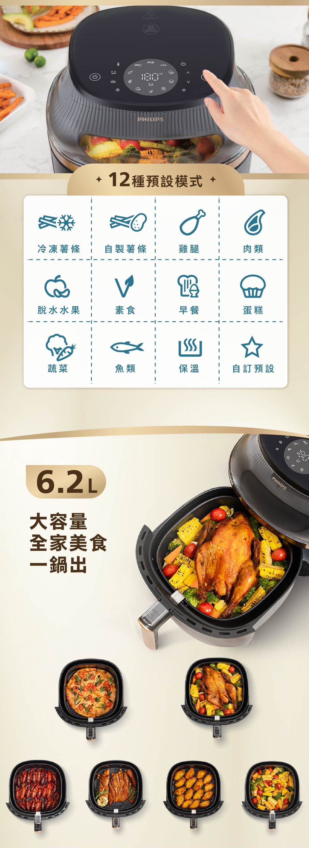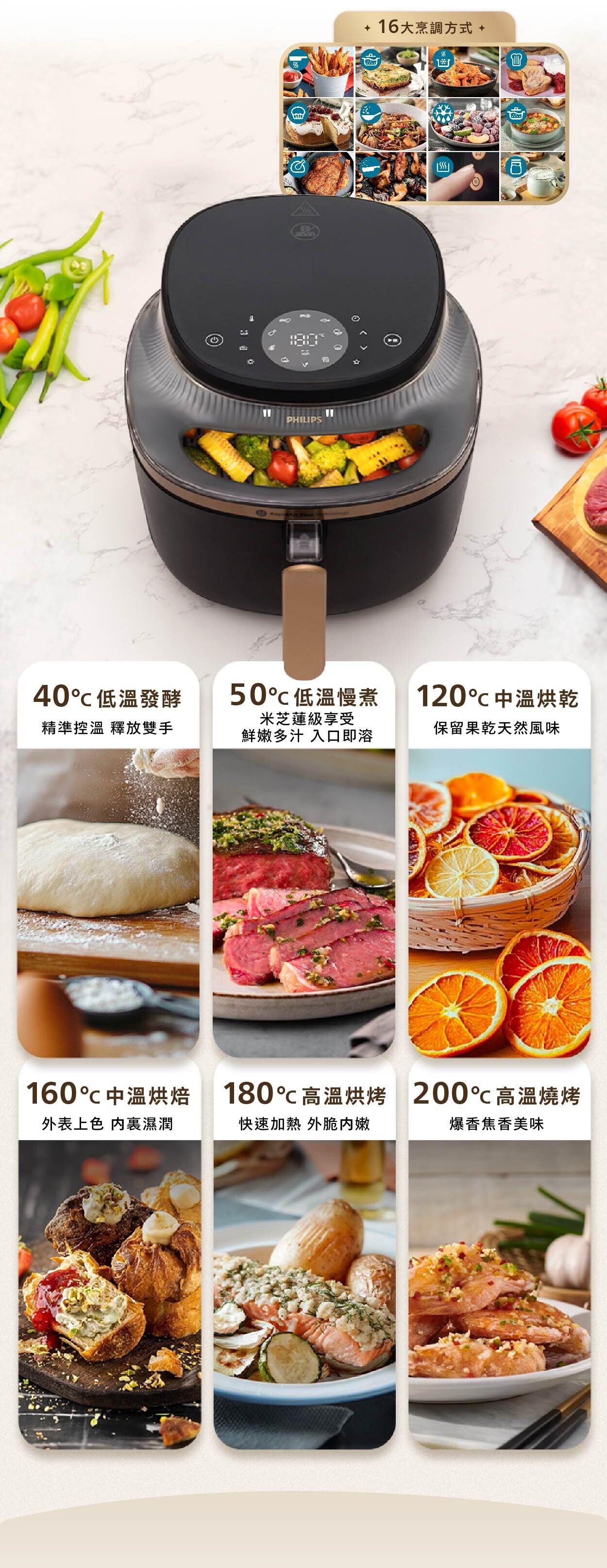超越空氣煎炸,具有 16 種烹調方式,從快速烘烤到數小時燉煮。只需幾個簡單的步驟即可製作美味的自製餐點。透過時尚的透視烹調天窗,您可以隨時查看烹調情況,告別猜測!