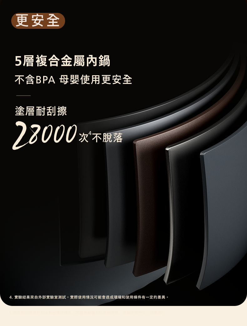 • 2mm厚度,5層複合金屬內鍋