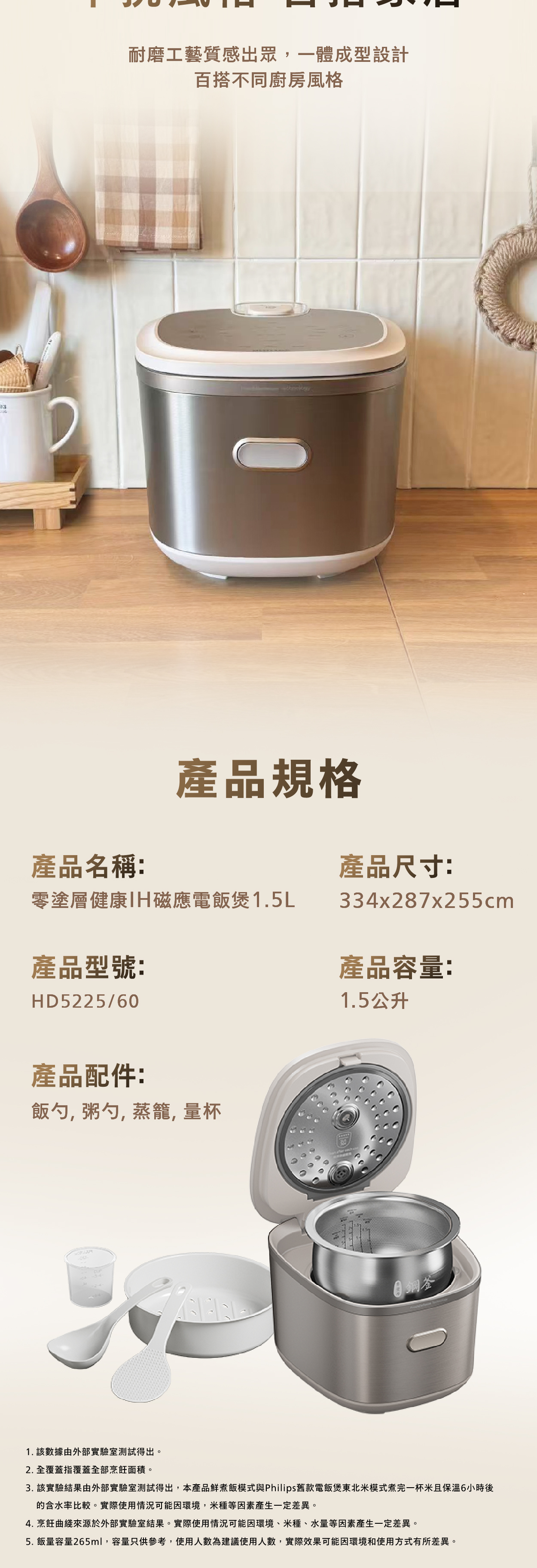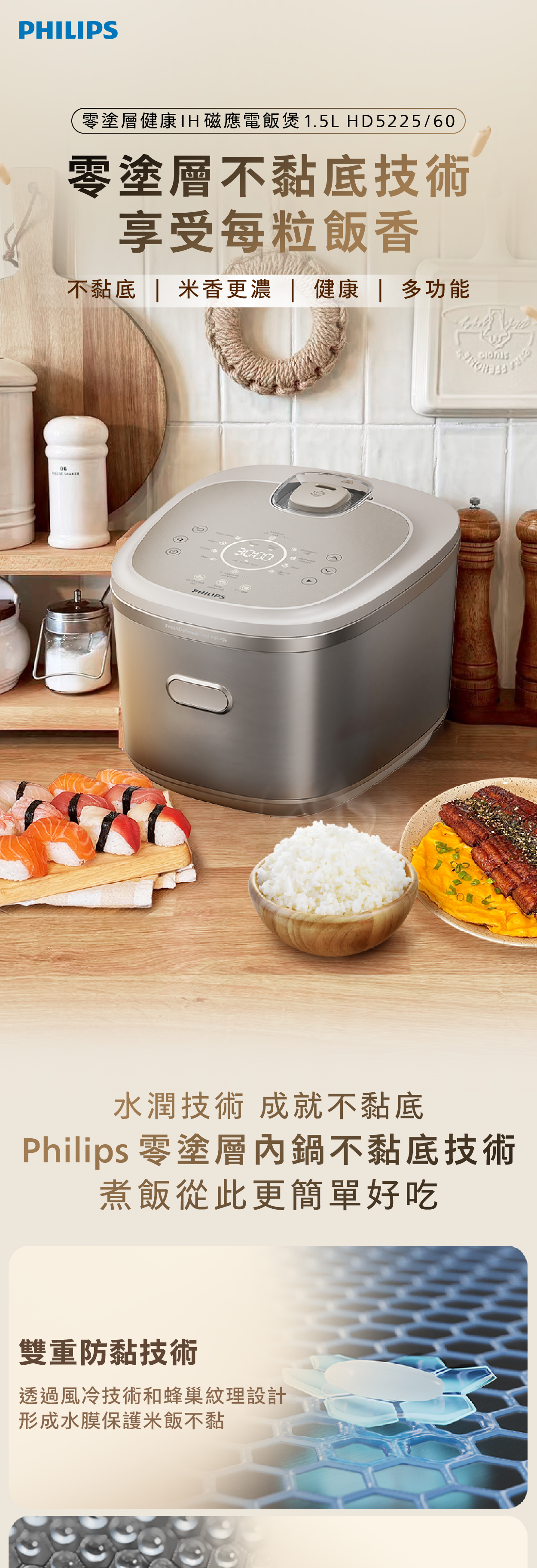 零塗層健康IH磁應電飯煲 1.5L HD5225/60