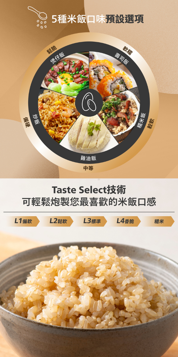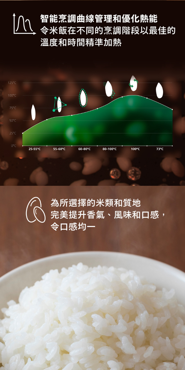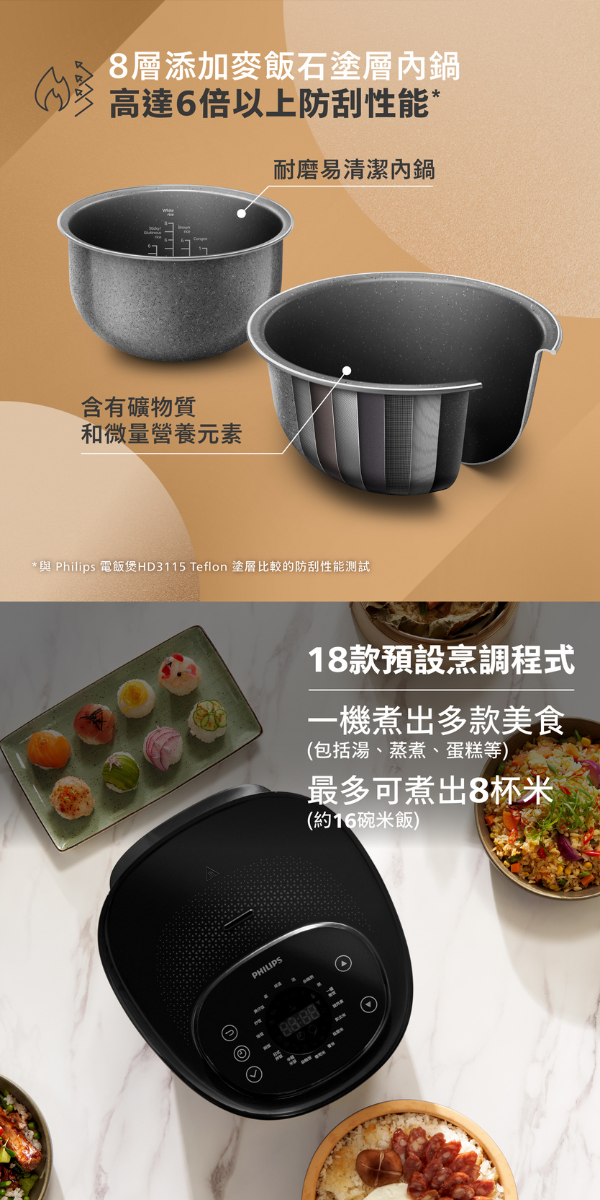 • 8層添加麥飯石塗層內鍋,高達6倍以上的防刮性能