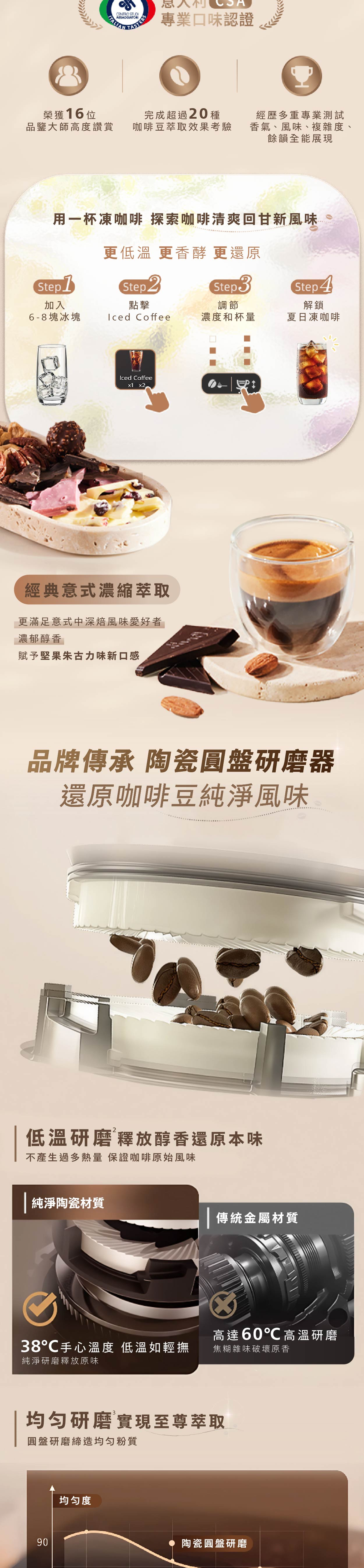 一鍵暢享多款咖啡風味,包括意式濃縮咖啡、鮮奶咖啡和泡沬咖啡等熱飲到各款凍咖啡