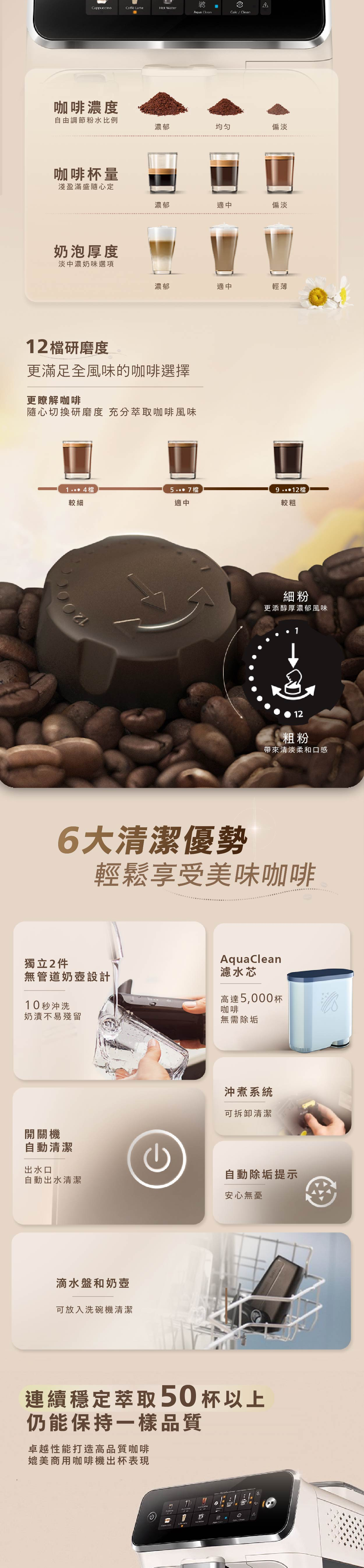 · 附送: 咖啡量匙,水質硬度試紙,AquaClean濾芯,LatteGo 儲藏蓋