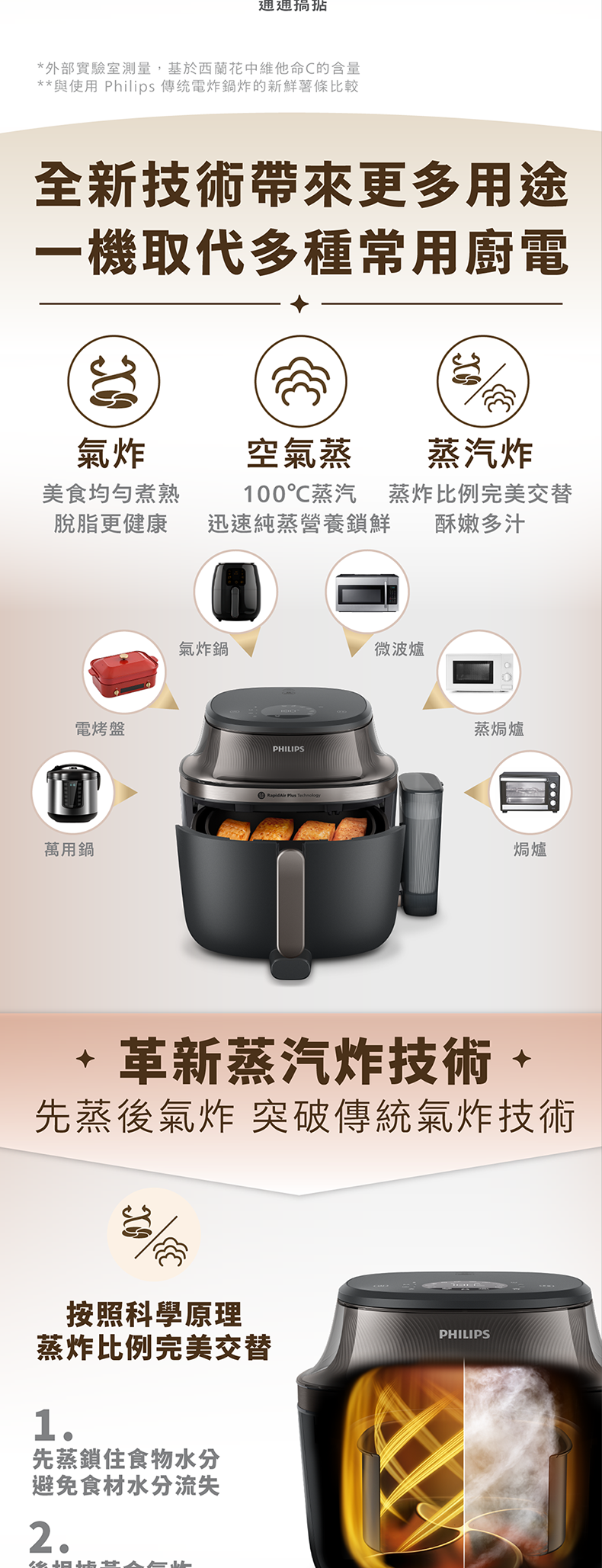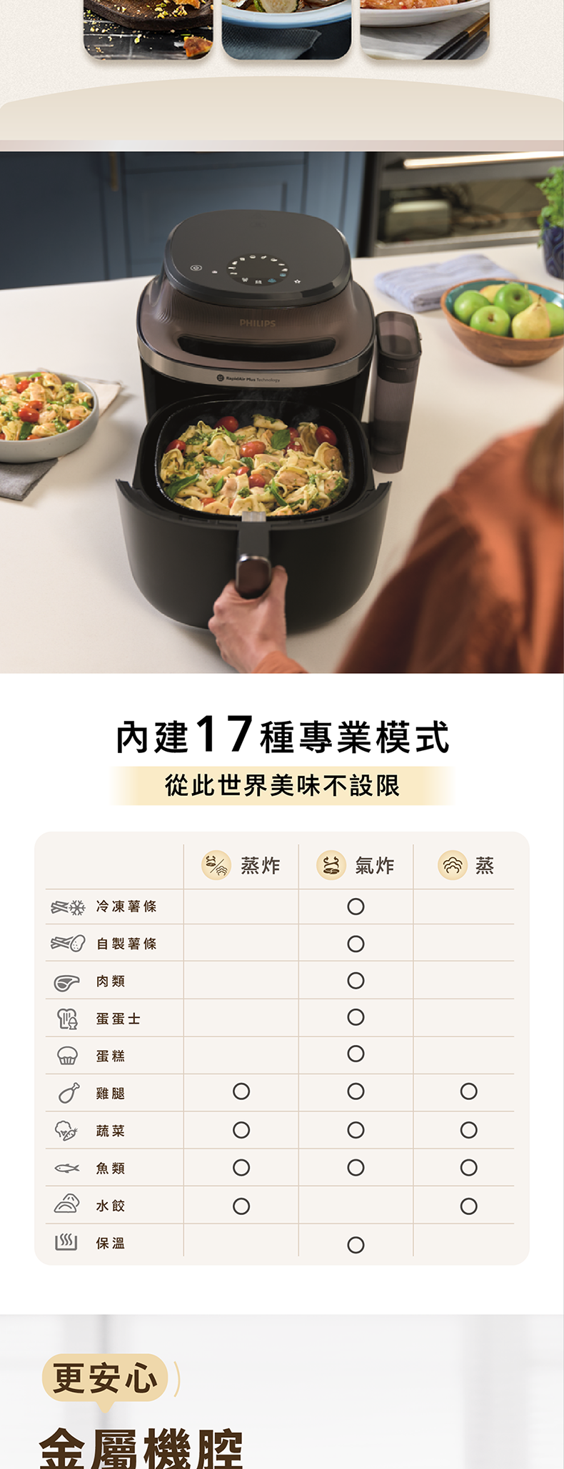 健康與創新結合,蒸汽炸多功能模式