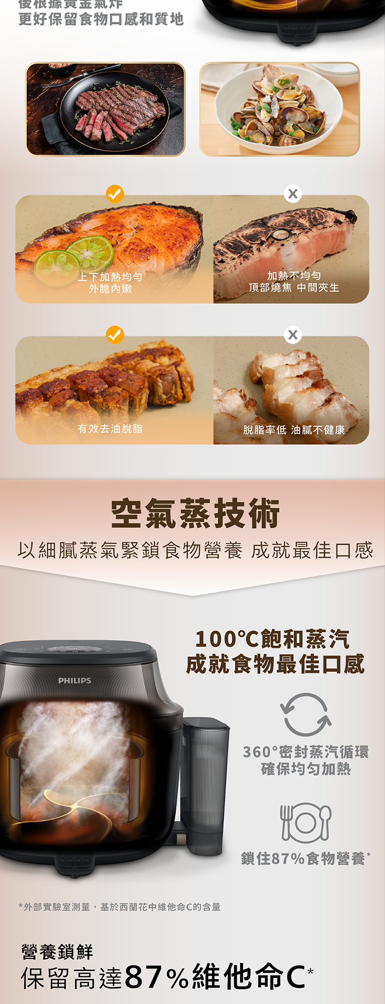 100℃純蒸技術,鎖住營養與鮮嫩