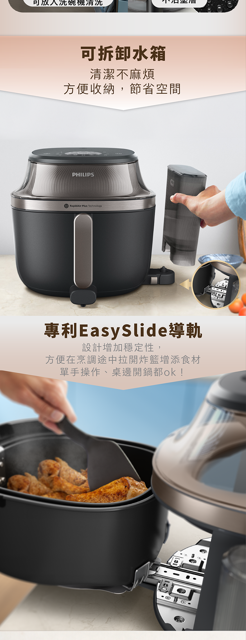 蒸汽及氣炸功能二合一設計,開啟烹飪新體驗